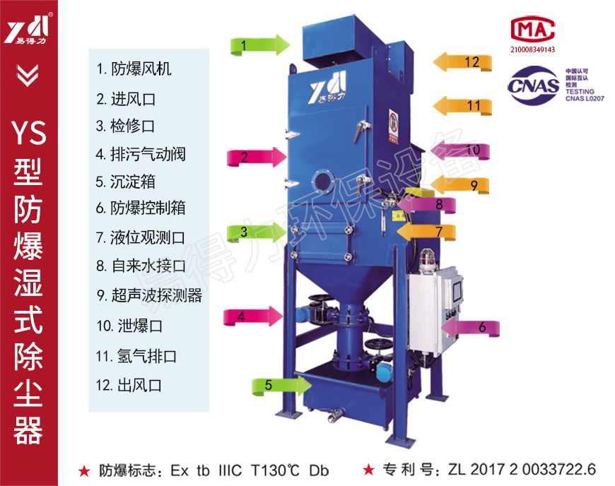 2.适用于镁、铝合金粉尘、淀粉、钛、三硝基甲苯粉尘、黑索金、粉尘玉米淀粉、硫磺、环氧树脂、煤粉、制药粉尘等。