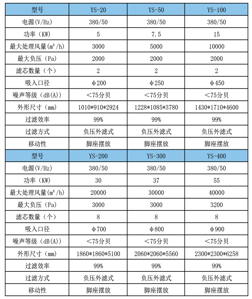 4.性能特点:结构简单、布局合理、操作方便、占地面积小。处理系统采用不锈钢制作,稳定性好,使用寿命长。进口风速达