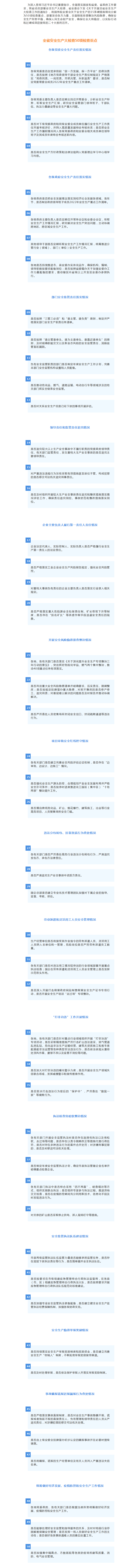 全省安全生产大检查来了,这50项必查!