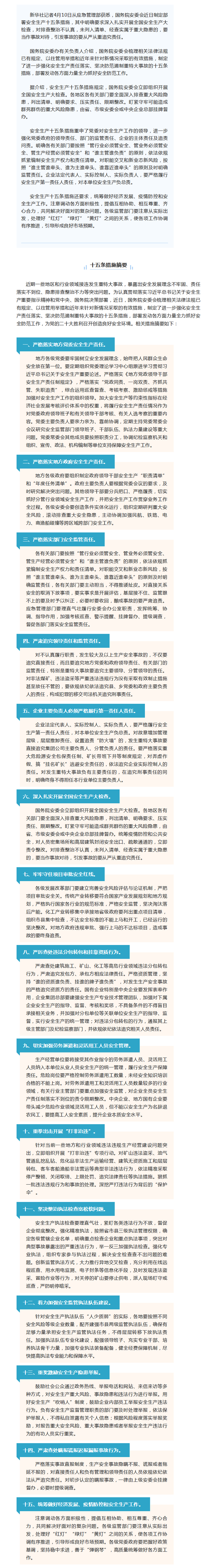 国务院安委会制定部署安全生产十五条措施