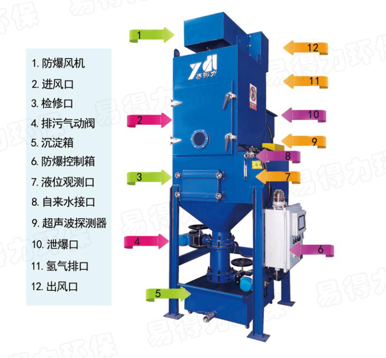 2.适用于镁、铝合金粉尘、淀粉、钛、三硝基甲苯粉尘、黑索金、粉尘玉米淀粉、硫磺、环氧树脂、煤粉、制药粉尘等。