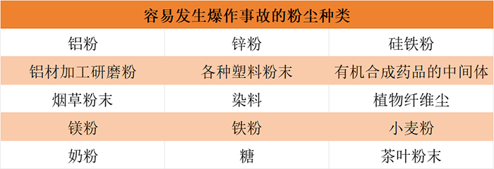 粉尘爆炸是由可燃性粉尘在爆炸极限范围内遇到热源(明火或高温)而引发的,那么哪些粉尘易引发爆炸呢?
