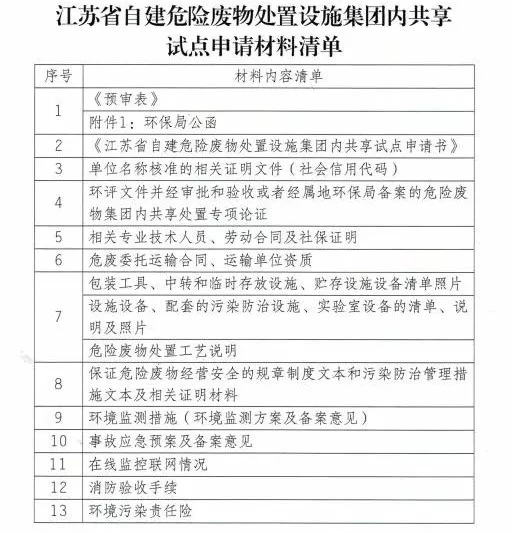 江苏省自建危险废物处置设施集团内共享试点工作方案(试行)