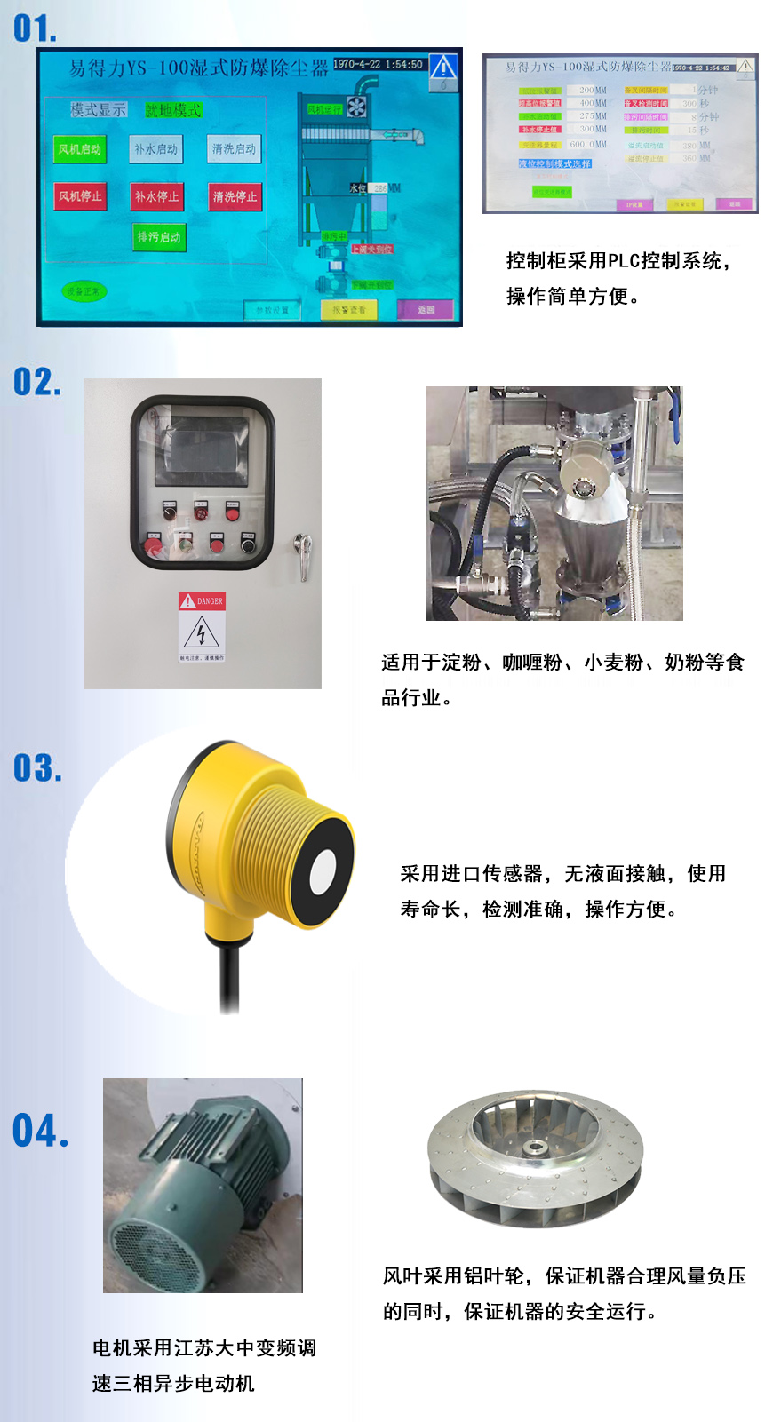 YS-20S 湿式集尘器采用 3.mm304 不锈钢制作。湿式集尘器是利用离心力原理使水和含 尘气体彻底混合后,将颗粒物洗涤