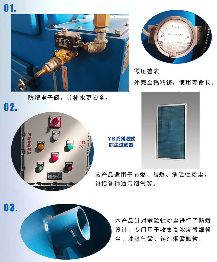 水幕过滤器广泛应用于:机械、汽车、航空、航天、军工、铁路、电机、水泵、机床、家具等等行业的整机或零部件喷漆。 ★操作维护简单——基本的操作是风机启停(按一个按钮即可);日常维护为补水(由于水是循环使用,补水只是自然蒸发的部分,所以补水量非常少,并且安装有自动补水装置后,无需人工操作);定期维护包括添加絮凝剂和清除漆渣。 ★安装方便灵活——均为模块化设计,能够根据喷漆工件和工艺要求非常方便的进行模块组合。无需特殊的安装基础和土建施工。更加适合改造厂房安装的环保设备。 ★ 多种类型前室——可根据用户的厂房条件和工艺特点选用合适的前室类型及规格尺寸。 ★无废水气排放——排放废气通过循环水净化处理(水中添加专用絮凝剂),水会因自然蒸发。因此无废水排放。循环水中留存的漆渣定期清除即可。 ★国家检测达标——废气排放和作业条件保证符合GB/T19001-2000(i d t IS09001: 2000)国家标准。 ★ 净化效率卓越—— 由于含有漆雾的空气,经过水幕、水帘、以及气水通道内与水雾的强烈混和搅拌,形成多级净化过程,提高了净化效率; ★ 清理残渣方便——水中加入絮凝剂,解决了漆雾粘附设备的烦恼,便于清理确保通风效果。